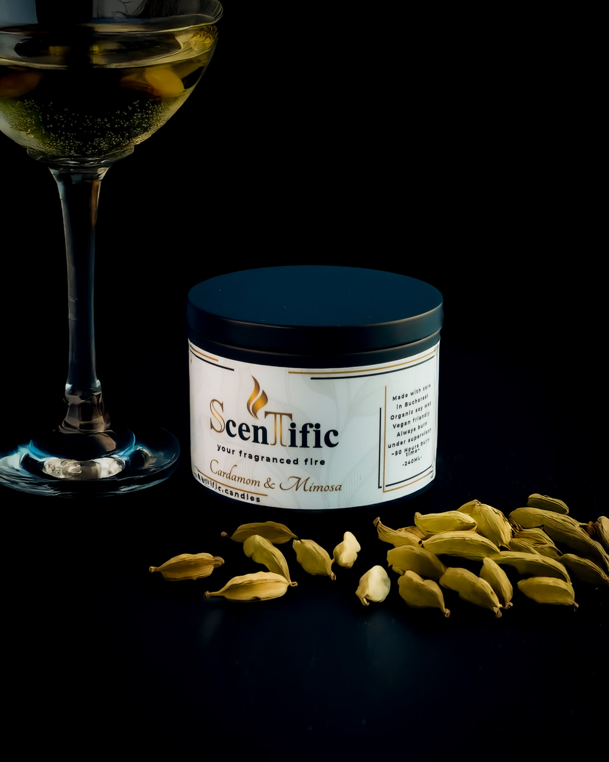 Această lumânare parfumată combină cardamonul intens cu mimoza delicată, creând o atmosferă sofisticată și relaxantă.